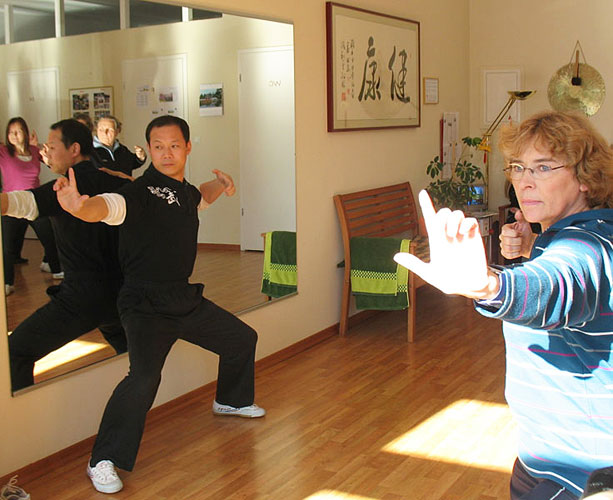 Zunächst stellen wir uns vor – hier mit einer Übung aus der Qigong-Form „Die acht Brokate – auf den Adler zielen“: