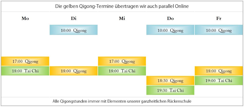 Jede unserer ganzheitlichen Trainingseinheiten mit 120 Minuten beginnen wir mit 60 Minuten Qigong zur Entspannung und Rückenkräftigung
