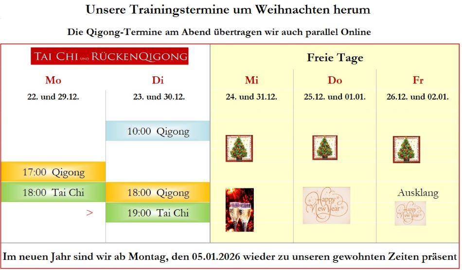 Auf mehrfachen Wunsch bieten wir auch die Möglichkeit, nur 60 Minuten am Tai Chi teilzunehmen